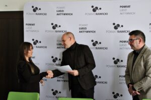 Wysokość grantu wynosiła od 10.500,00 zł do 22.500,00 zł. Certyfikaty zostały wręczone przez Starostę Rawickiego Adama Sperzyńskiego i Dyrektora Powiatowego Urzędu Pracy w Rawiczu Sławomira Wasilewskiego. Pan Starosta pogratulował przyszłym przedsiębiorcom i życzył im powodzenia w prowadzeniu działalności.
